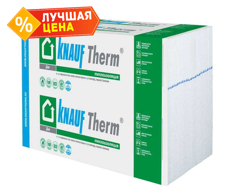 Утеплитель пенополистирол Knauf Therm Дом (Кнауф Therm Дом) представляет собой высококачественный материал для теплоизоляции жилых помещений. Этот продукт из линейки Knauf Therm (Кнауф Therm) разработан специально для утепления домов, обеспечивая отличную тепловую защиту и долговечность. Размеры плит 50x600x1000 мм делают его удобным в монтаже, а экологически чистый состав гарантирует безопасность для здоровья. Идеален для стен, полов и крыш, помогая снизить энергозатраты на отопление.